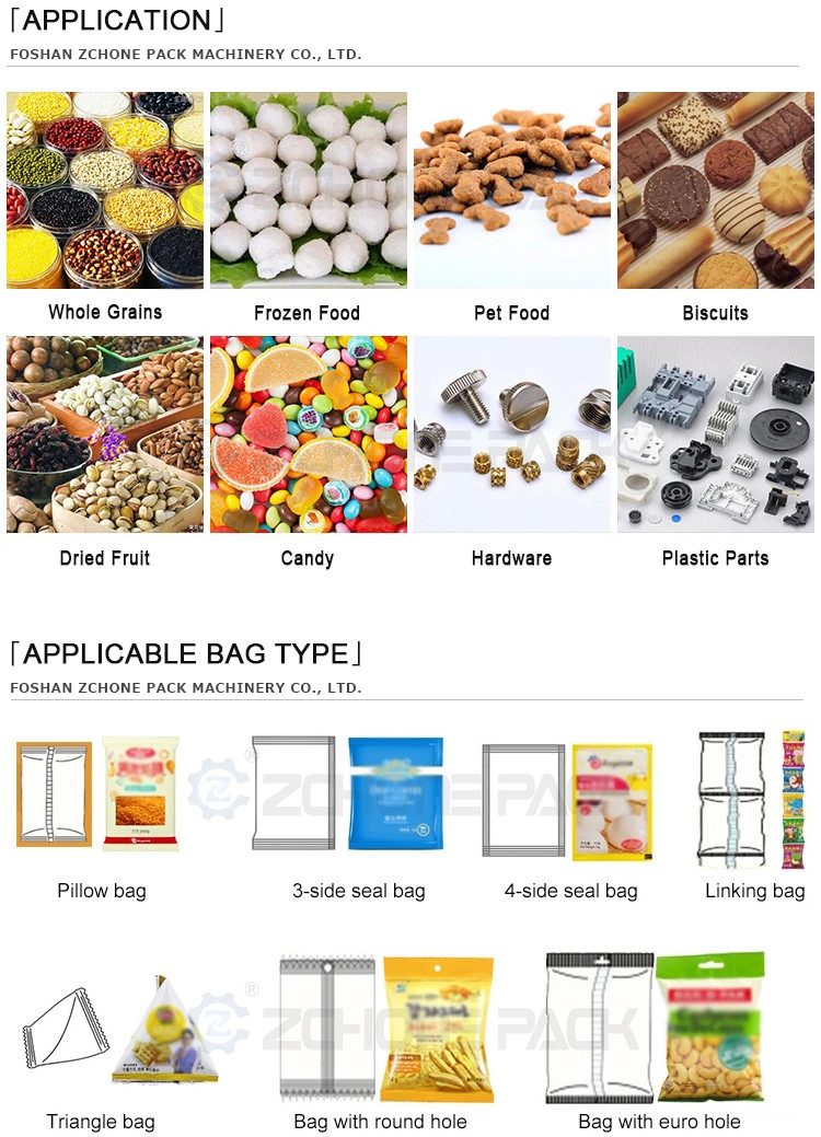 Adequado para muitos tipos de equipamentos de medição e embalagem de diferentes tipos de produtos; como alimentos inchados, rolinhos de camarão, amendoim, pipoca, farinha de milho, sementes e açúcar, etc., cuja forma é rolo, fatia e grânulo.